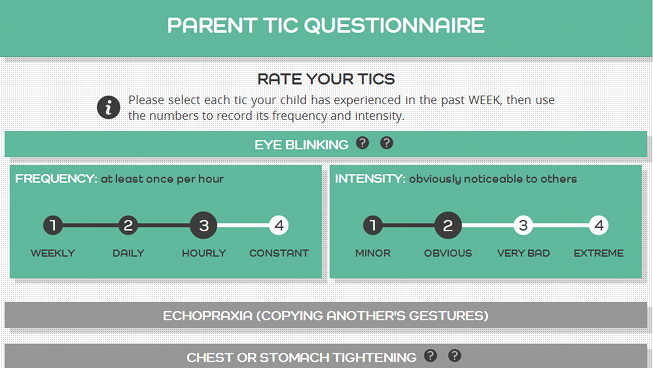 The Parent Tic Questionnaire (PTQ) is a standardized test used to measure tic frequency and severity. On TicHelper.com, parents are asked to fill out the PTQ at the start of the program, as well as once a week for the duration of the program.